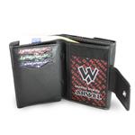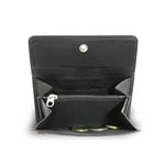 2 přihrádky na bankovky, klopnová kapsa na mince, kde jsou dvě otevřené přihrádky a jedna zipová kapsička, 7 kapes na kreditní karty, občanský průkaz nebo řidičský průkaz, dvě síťová okna na fotografie nebo doklady. Základní rozměr 12,5 x 9,5 cm.
