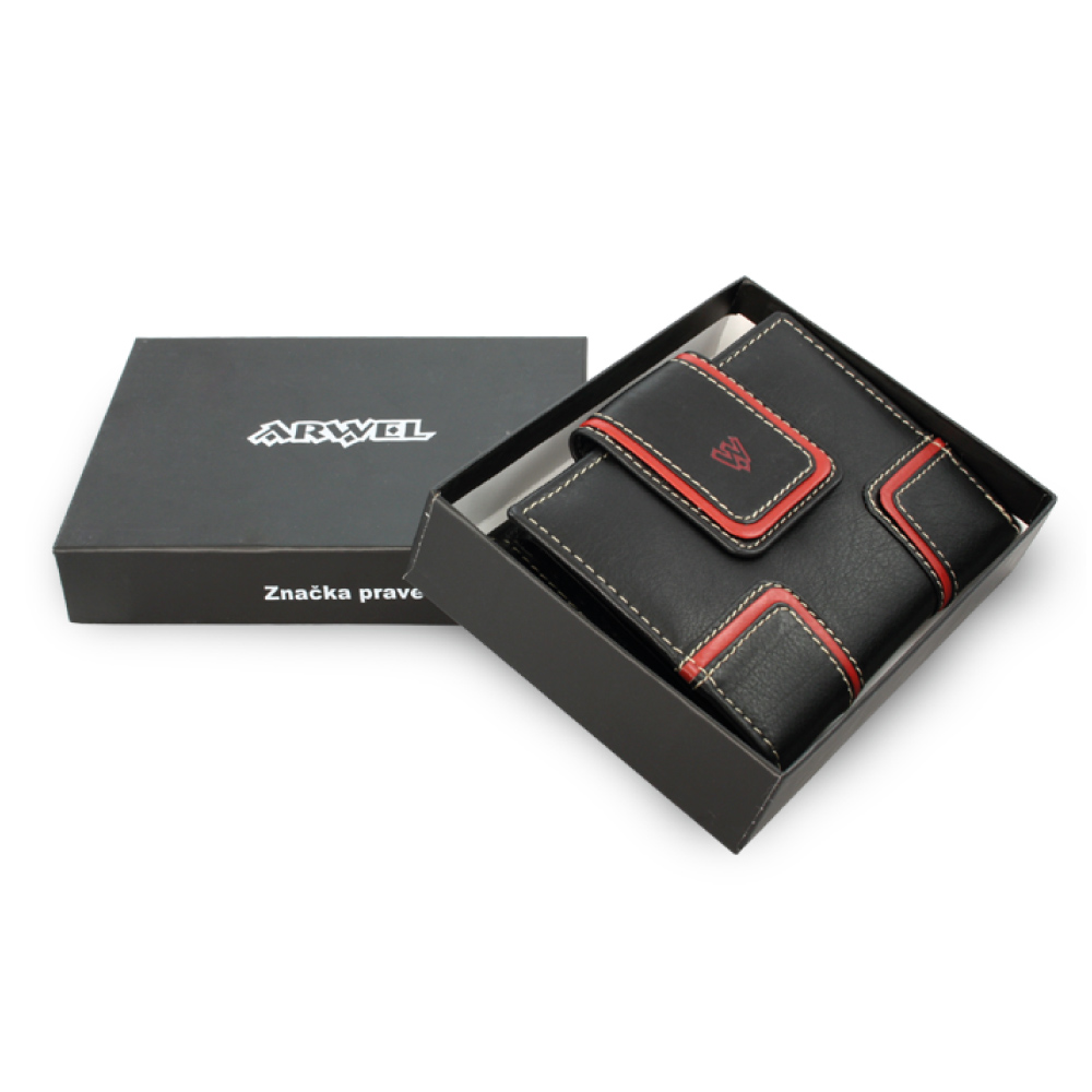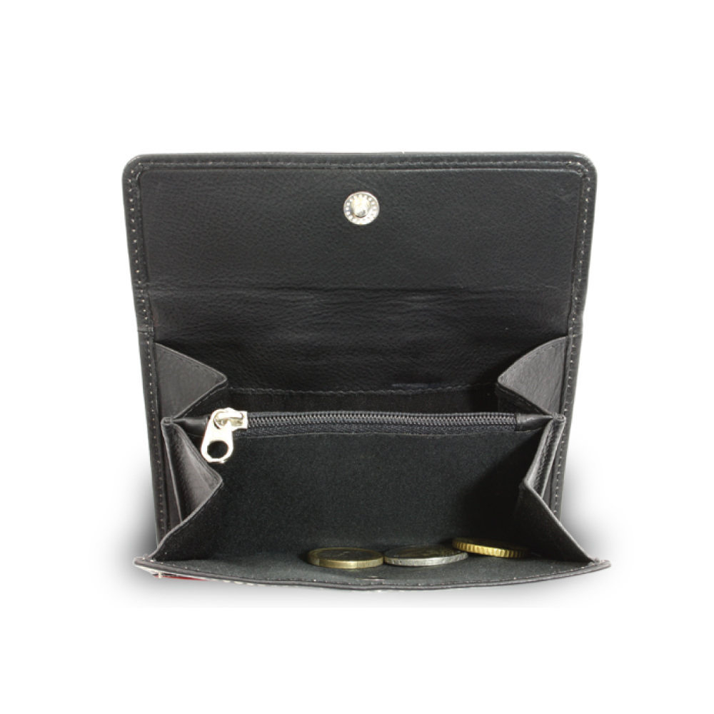 Dámská peněženka z pravé kůže se dvěma klopnami. Příjemná telecí kůže, která je na dotek velmi jemná a hebká. Tuto peněženku nabízíme ve dvou barevných variantách, kdy si můžete vybrat buď kombinaci černé barvy peněženky s červeným lemováním nebo červenou barvu peněženky s béžovým lemováním. Peněženka nabízí dostatek místa na karty i bankovky, dvě kapsy na mince a malou vnitřní zipovou kapsičku. Tato peněženka vás jistě potěší! Peněženku dodáváme ve stylové dárkové krabičce.