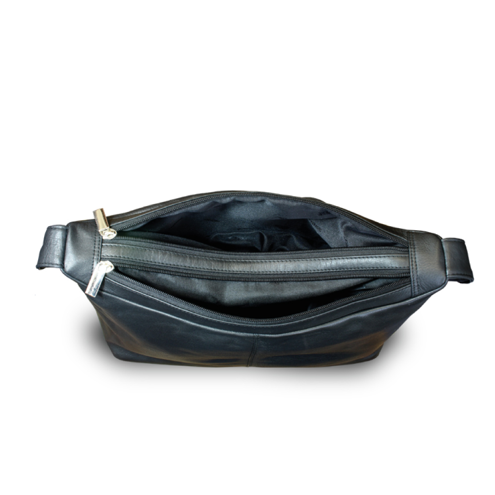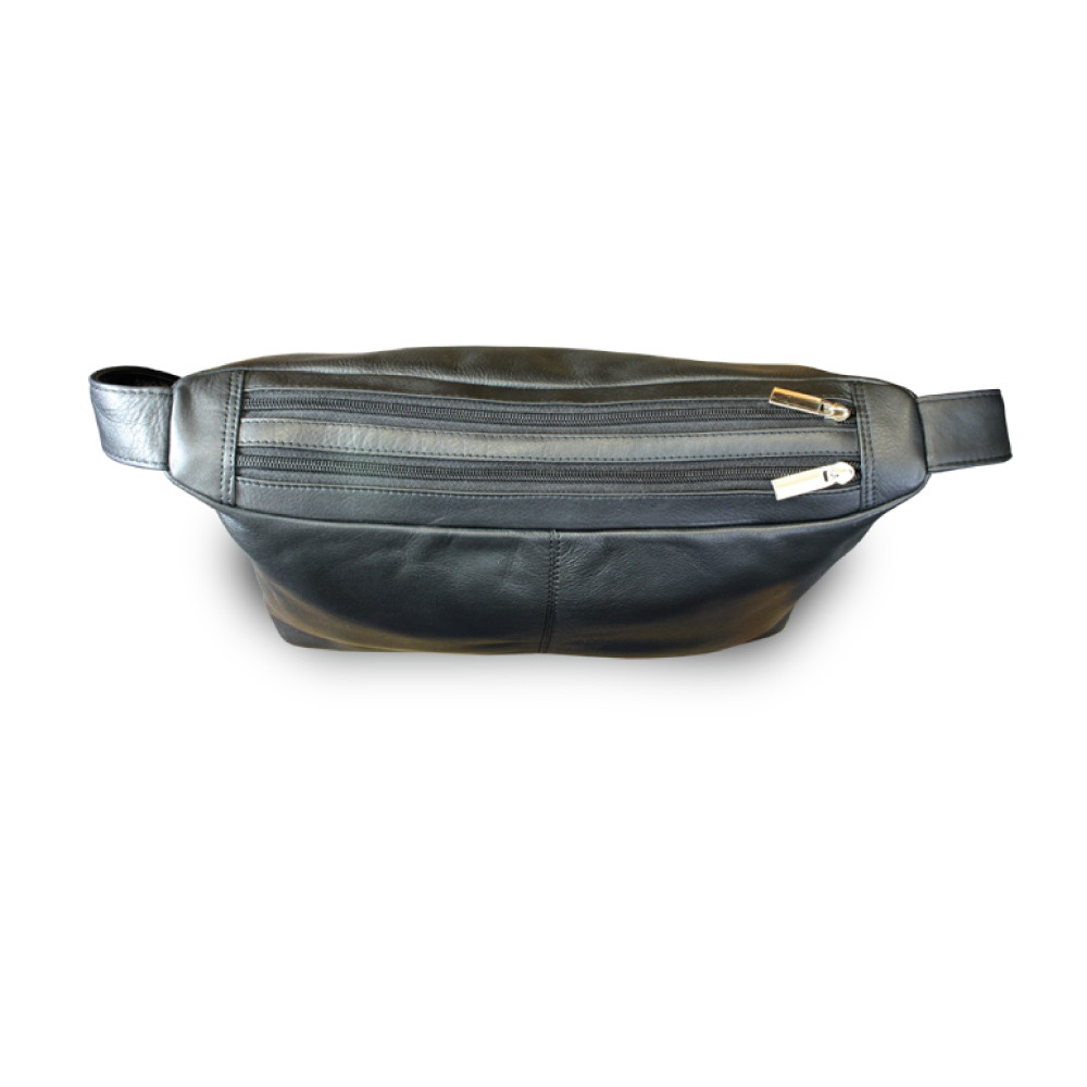 Black leather Zipper bag with strap