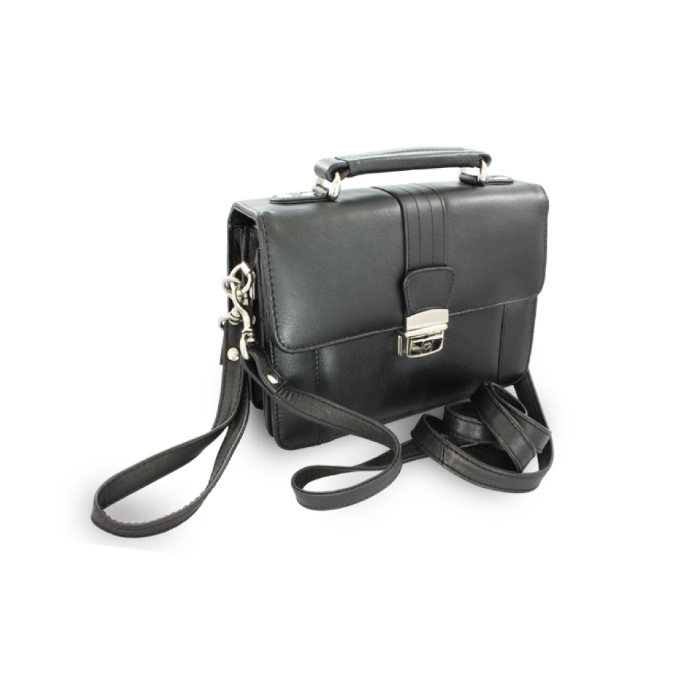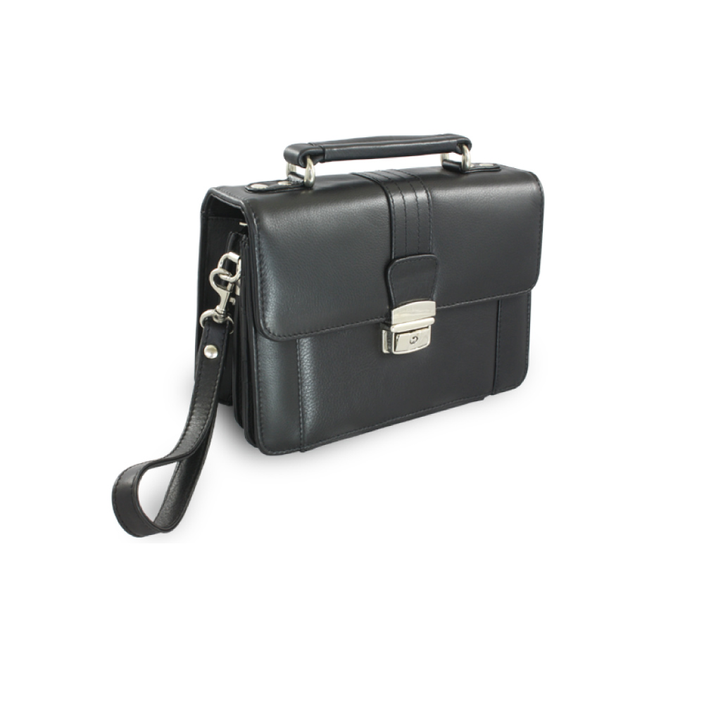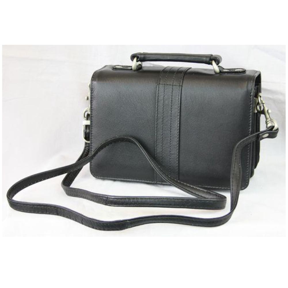 Pánská kožená etue se sklápěcím registrem a držadlem - černá