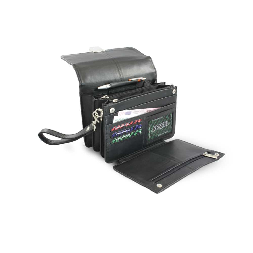 Popis: 3 separace oddělené zipovými kapsami, sklápěcí registr s 2 separacemi na doklady, 4 kapsy pro kreditní karty,