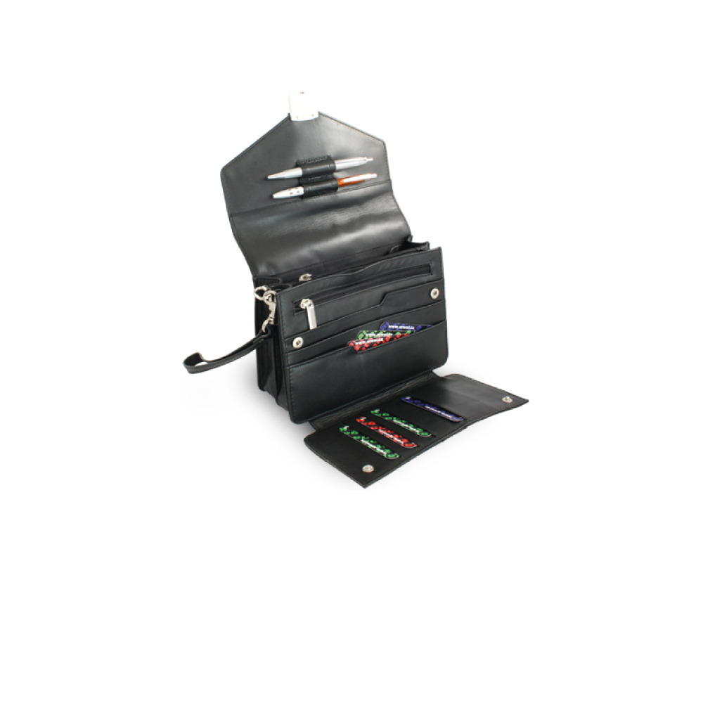 Popis: 2 separace oddělené zipovou kapsou, sklápěcí registr s 3 separacemi na doklady,
