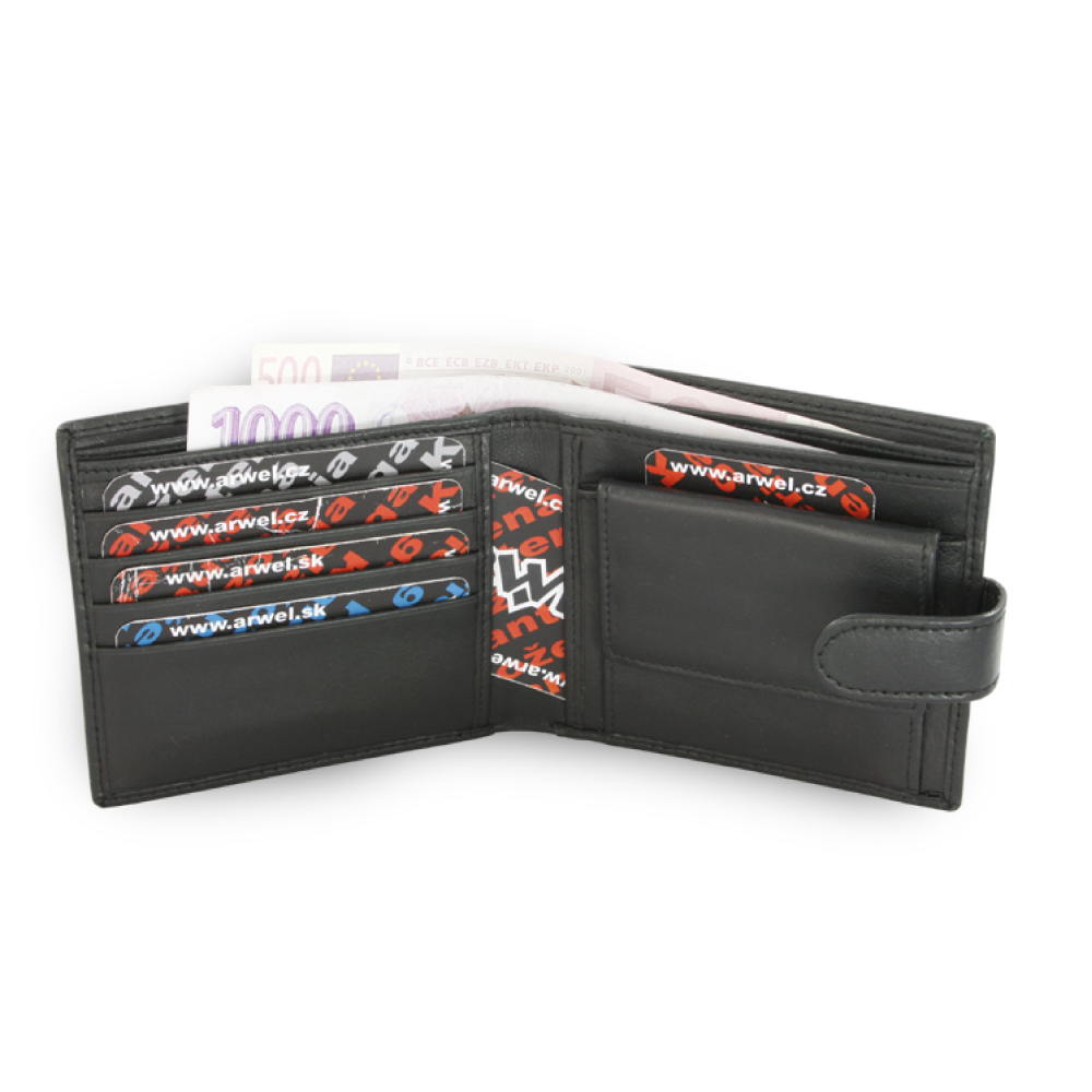 kapsa na mince, 4 kapsy na kreditní karty, 1 menší a 2 velké kapsy na doklady