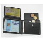 Černá pánská kožená peněženka 2 přihrádky na bankovky, kapsa na mince, 4 kapsy na kreditní karty, 2 průhledné a jedna vnitřní kapsa velikosti osobních dokladů