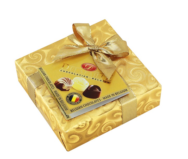 4 ks belgických pralinek v kombinaci mléčné, hořké a bílé čokolády v luxusním balení