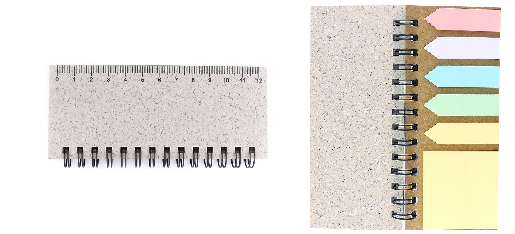 Bloček NOTERULER s deskami z pšeničné slámy se samolepícími lístky, štítky a pravítkem