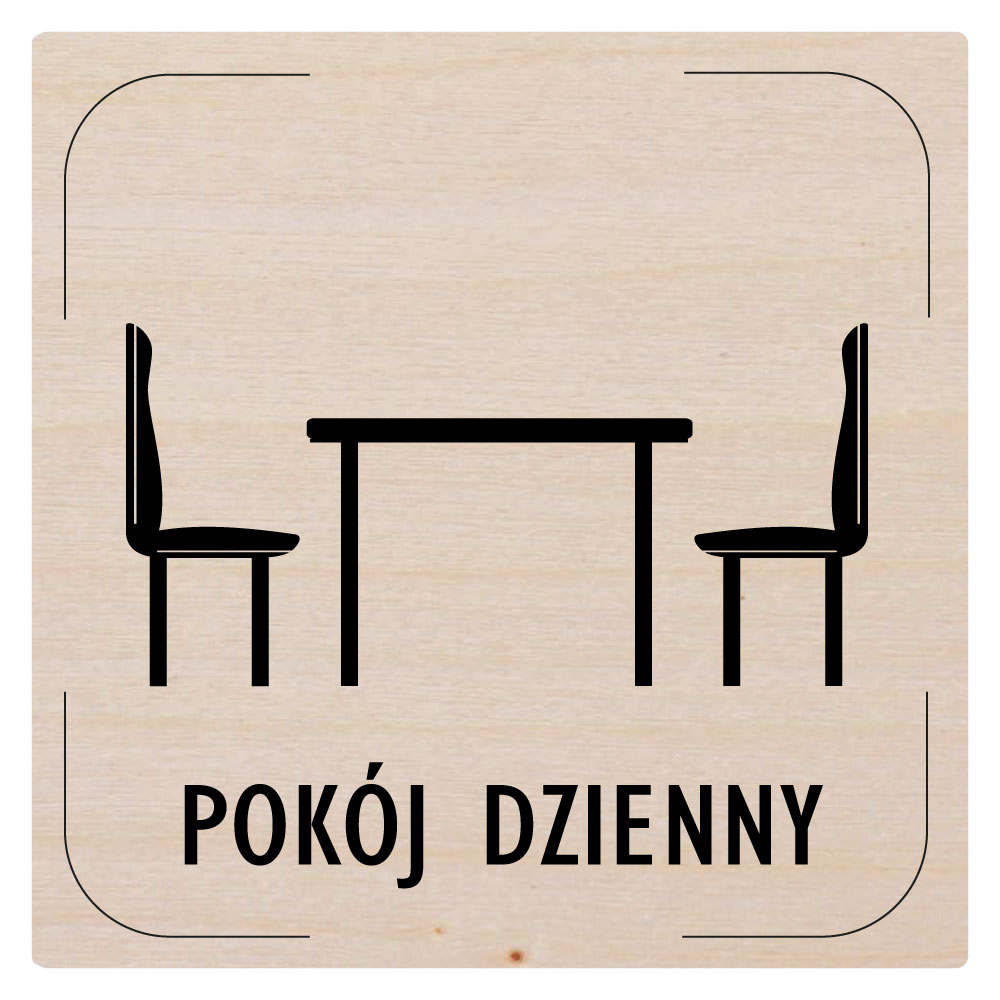 Cedulka na dveře - Denní místnost - piktogram, dřevěná tabulka, 80 x 80 mm