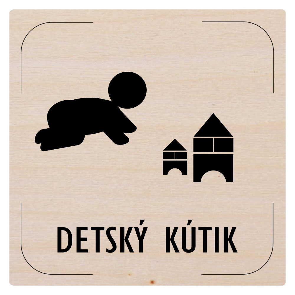 Cedulka na dveře - Dětský koutek - piktogram, dřevěná tabulka, 80 x 80 mm