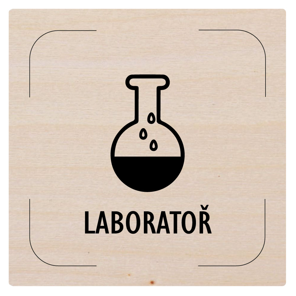 Cedulka na dveře - Laboratoř - piktogram, dřevěná tabulka, 80 x 80 mm
