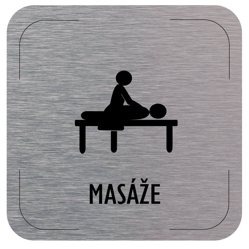 Cedulka na dveře - Masáže - piktogram, hliníková tabulka, 80 x 80 mm