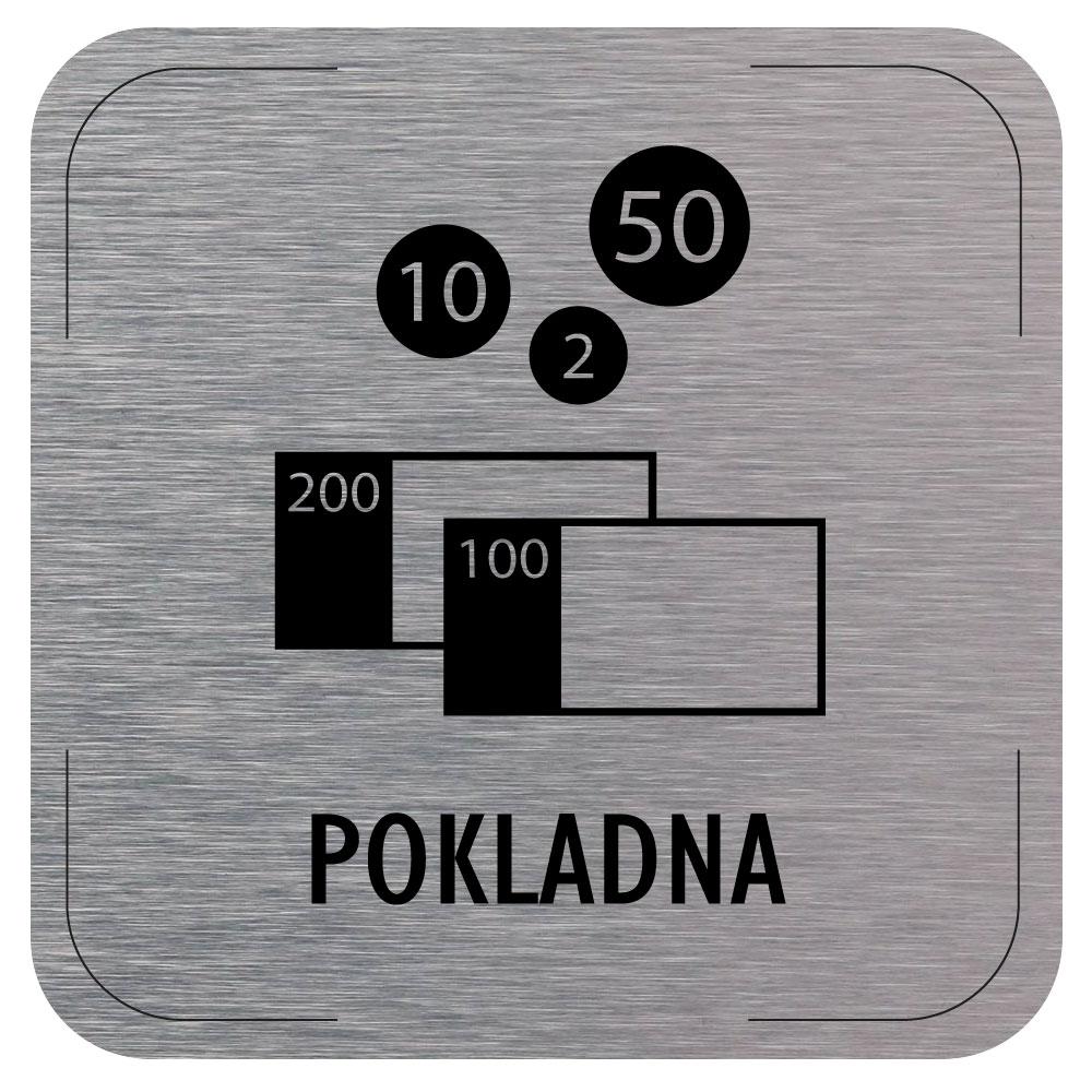 Cedulka na dveře - Pokladna - piktogram, hliníková tabulka, 80 x 80 mm