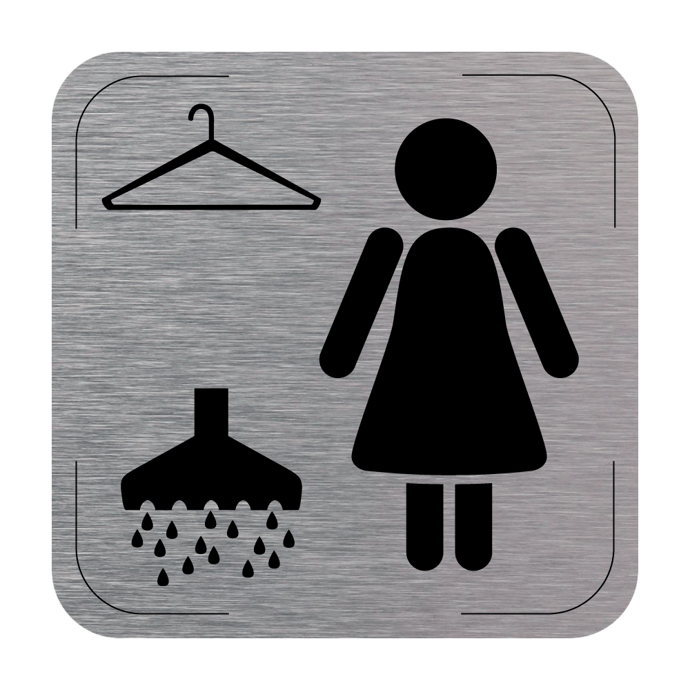 Cedulka na dveře - Šatna se sprchou ženy, hliníková tabulka, 80 x 80 mm