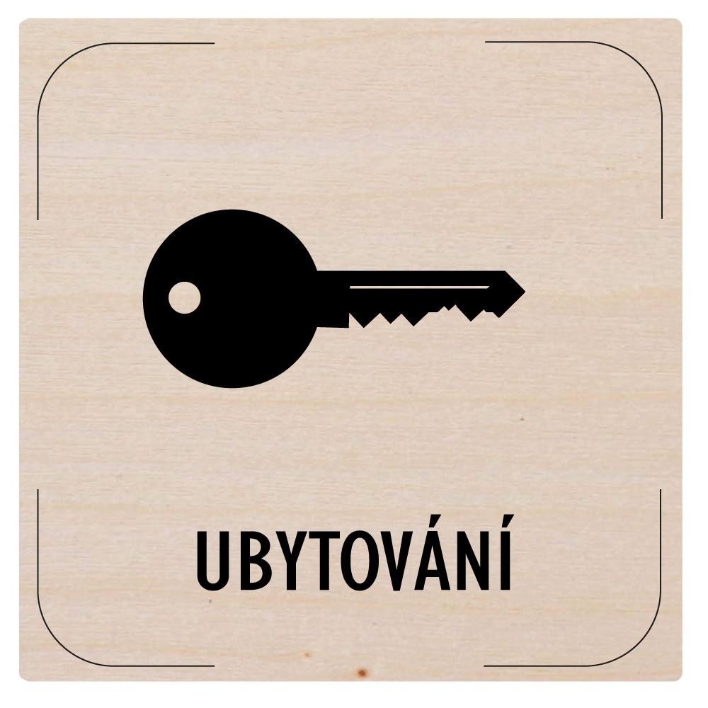 Cedulka na dveře - Ubytování - piktogram, dřevěná tabulka, 80 x 80 mm