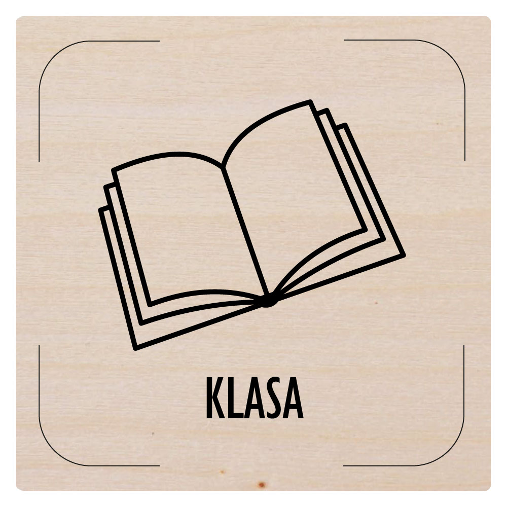 Cedulka na dveře - Učebna - piktogram, dřevěná tabulka, 80 x 80 mm