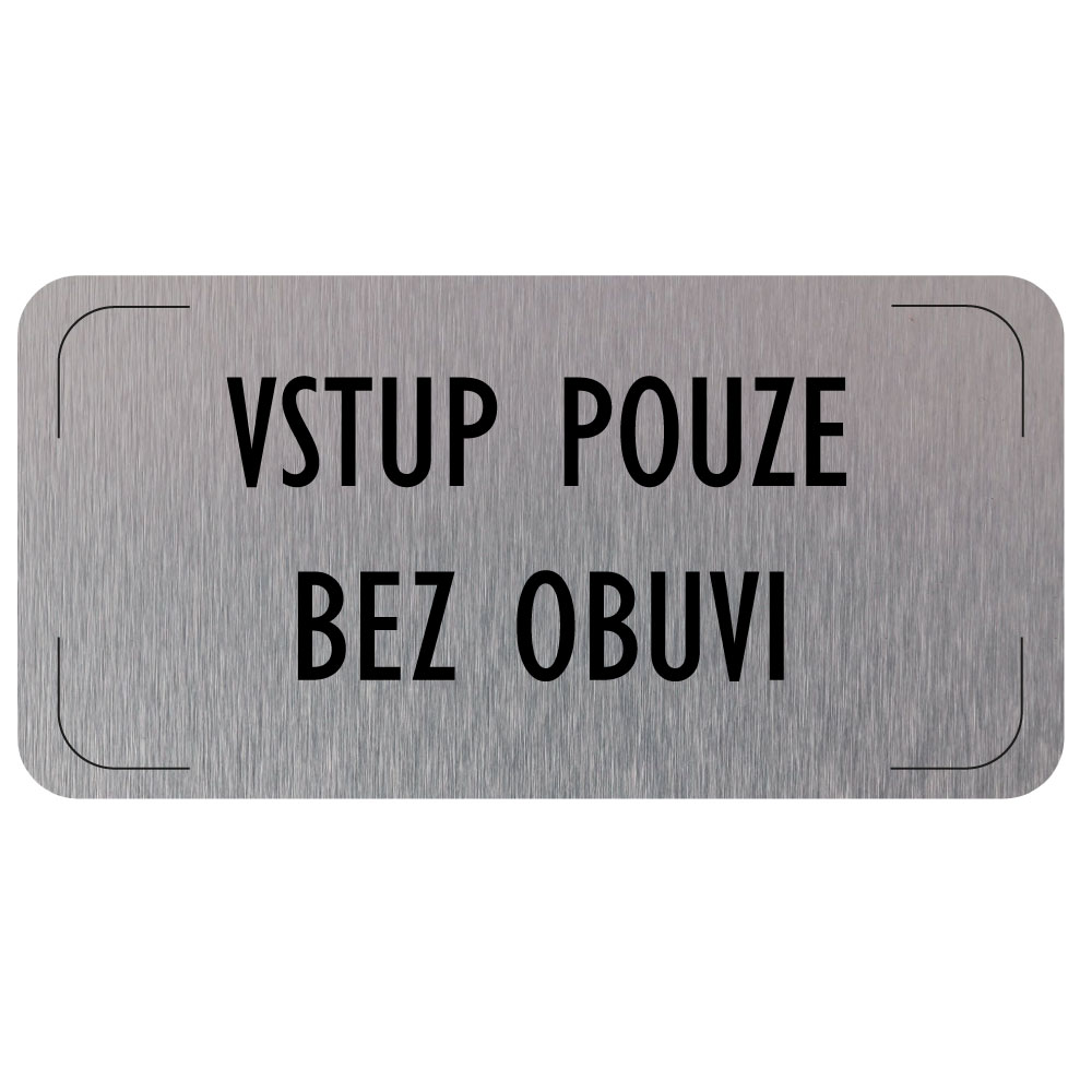 Cedulka na dveře - Vstup pouze bez obuvi, hliníková tabulka, 160 x 80 mm