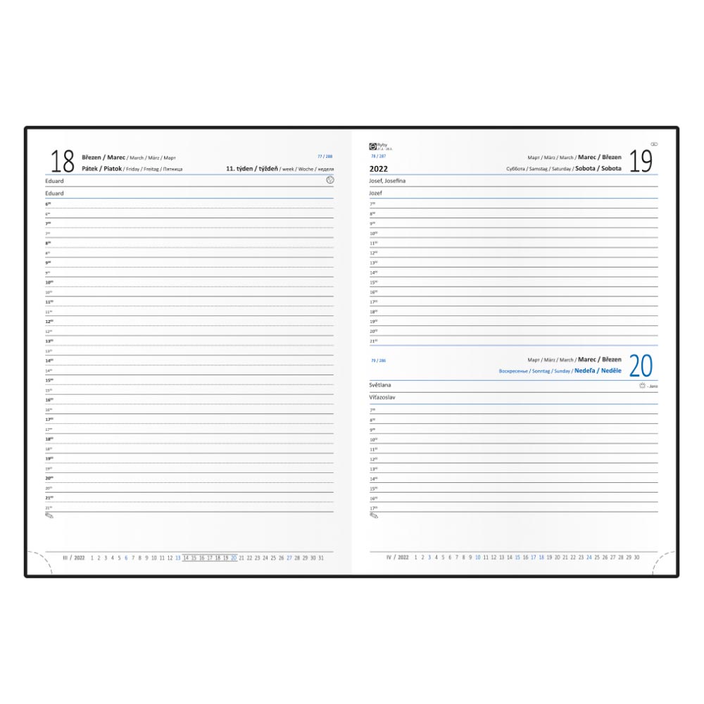 roční plánovací kalendář CZ/SK, místo na poznámky.