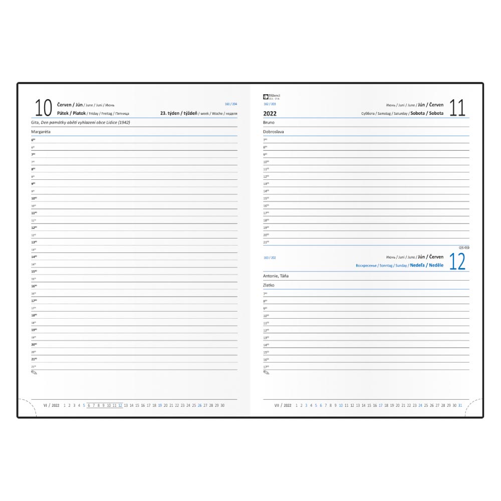 roční plánovací kalendář CZ/SK, místo na poznámky.