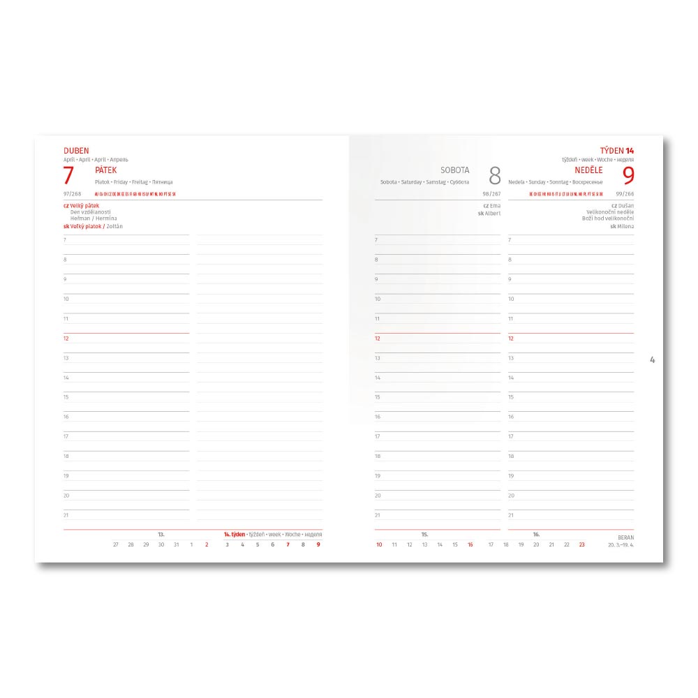 poznámky, daňový kalendář, důležitá telefonní čísla.