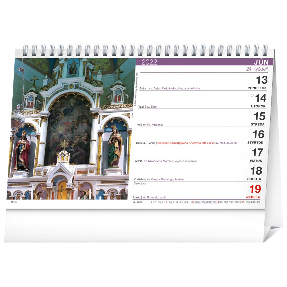 Rozměr: 23,1 x 14,5 cm Kalendárium: slovenské týdenní Rozsah kalendáře: 30 listů (oboustranný tisk) Vazba: dvojitá spirála Papír: 100 g/m2 Plocha pro potisk: 23,1 x 2,9 cm