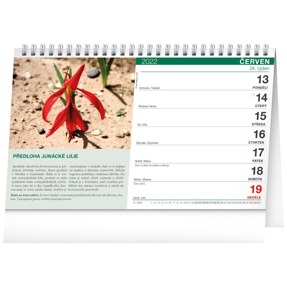 Rozměr: 23,1 x 14,5 cm Kalendárium: české týdenní Rozsah kalendáře: 30 listů (oboustranný tisk) Vazba: dvojitá spirála Papír: 100 g/m2 Plocha pro potisk: 23,1 x 2,9 cm