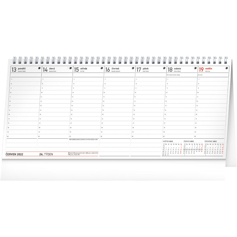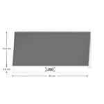 Rozměr: 33 x 14,5 cm Kalendárium: české týdenní Rozsah kalendáře: 30 listů (oboustranný tisk) Vazba: dvojitá spirála Papír: titulka 100 g/m2 křída – vnitřek 80 g/m2 ofset Plocha pro potisk: 33 x 2,9 cm