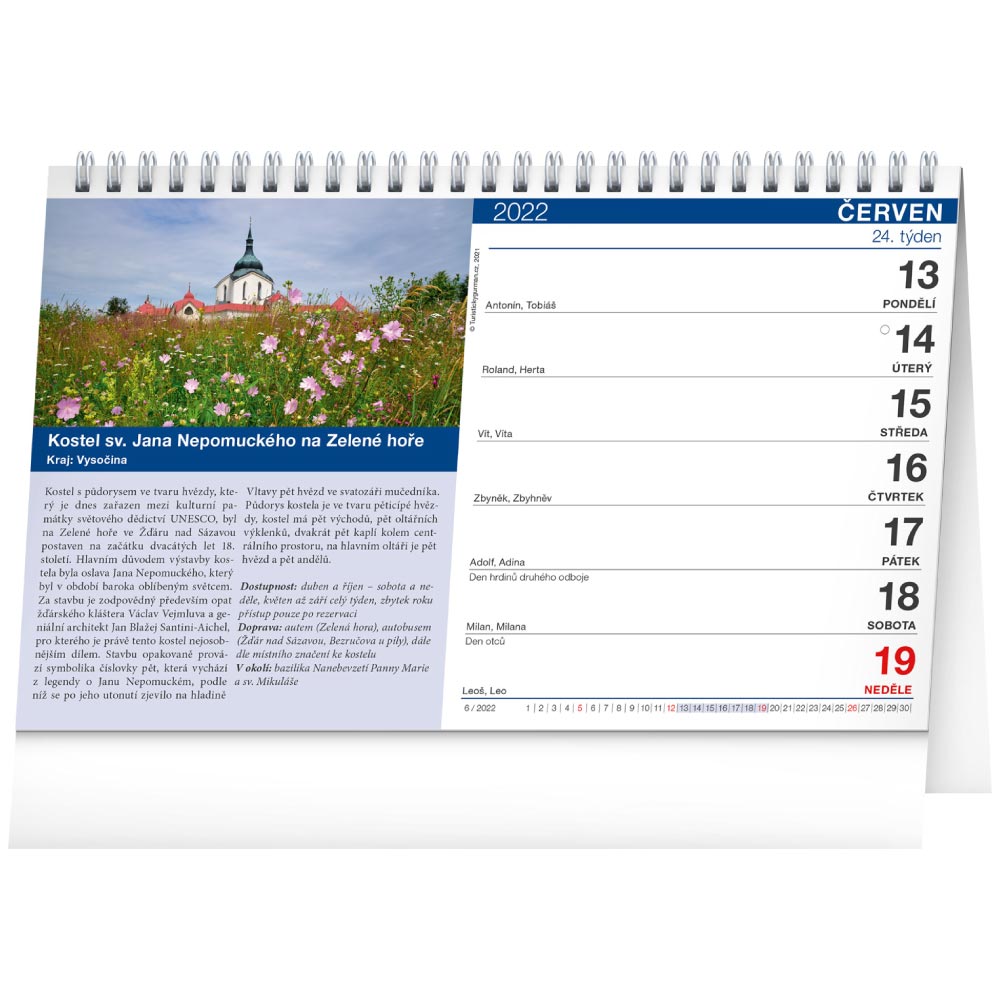 Rozměr: 23,1 x 14,5 cm Kalendárium: české týdenní Rozsah kalendáře: 30 listů (oboustranný tisk) Vazba: dvojitá spirála Papír: 100 g/m2 Plocha pro potisk: 23,1 x 2,9 cm