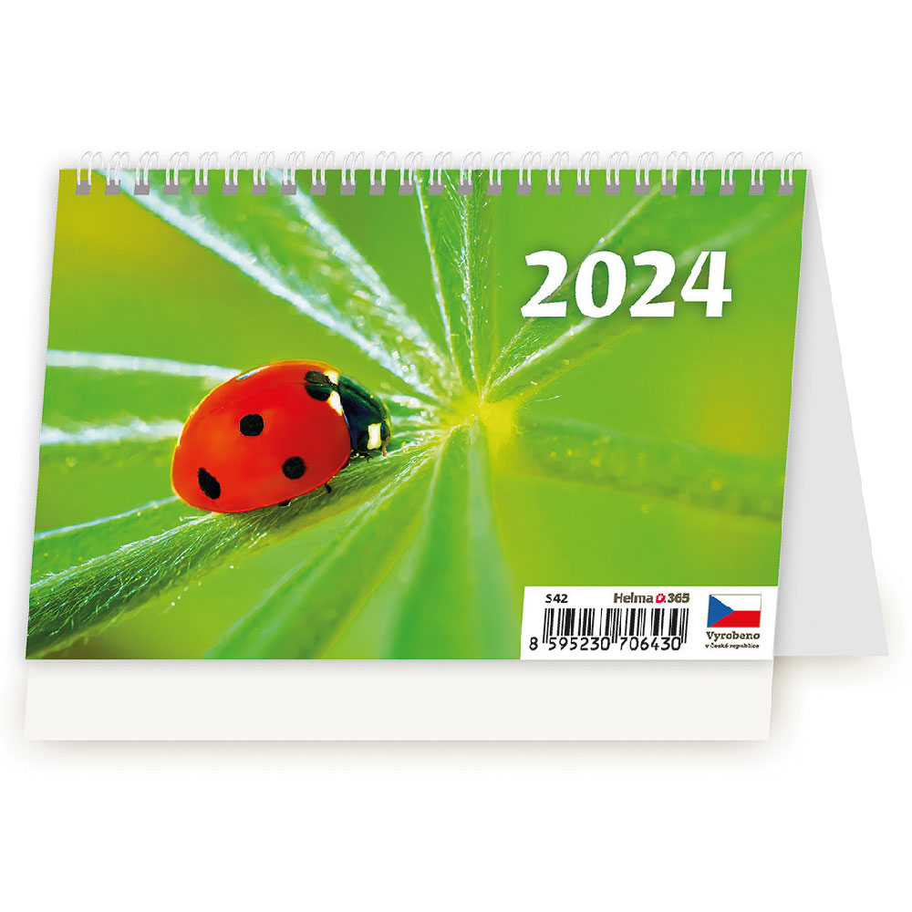 Rozměr: 15,1 x 9,9 cm Kalendárium: České týdenní řádkové jmenné Rozsah kalendáře: 56 + 2 stran Stojánek: zámkový Vazba: Twin Wire Plocha pro potisk: 15,1 x 2 cm