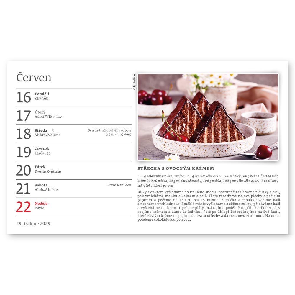 Rozměr: 22,6 x 13,9 cm Kalendárium: české týdenní řádkové jmenné Rozsah kalendáře: 58 + 2 stran Stojánek: zámkový Vazba: Twin Wire Plocha pro potisk: 22,6 x 3 cm