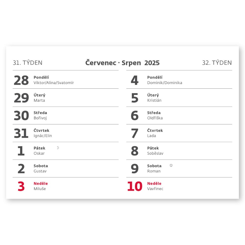 Kalendárium: České týdenní řádkové jmenné