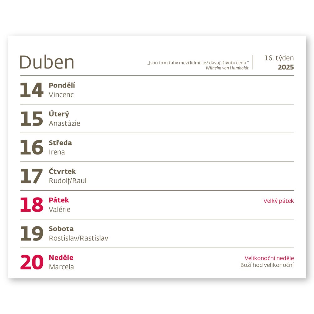 Kalendárium: České týdenní řádkové jmenné s citáty