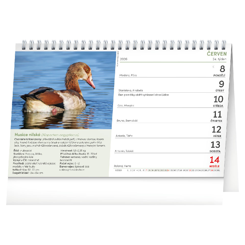 Desk calendar 2026 Czech birds