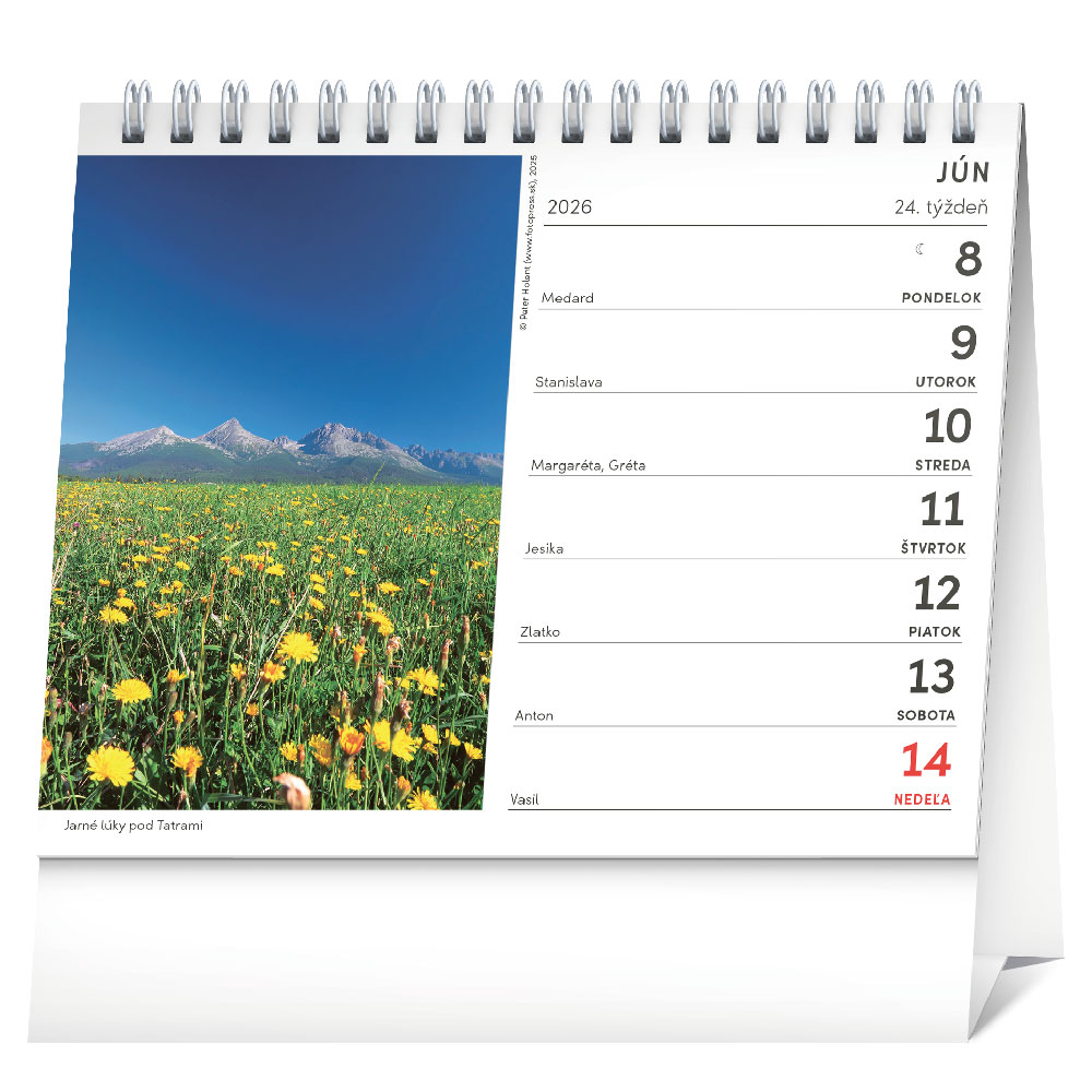 Rozměr: 16,5 x 13 cm Kalendárium: slovenské týdenní Rozsah kalendáře: 29 listů (oboustranný tisk) Vazba: dvojitá spirála Papír: 100 g/m2 Plocha pro potisk: 16,5 x 2,9 cm