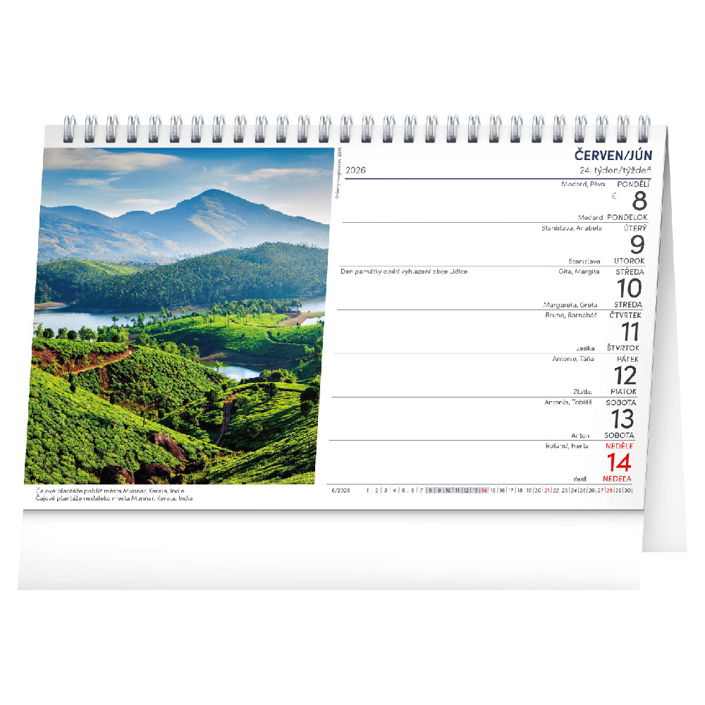 Rozměr: 23,1 x 14,5 cm Kalendárium: české a slovenské týdenní Rozsah kalendáře: 30 listů (oboustranný tisk) Vazba: dvojitá spirála Papír: 100 g/m2 Plocha pro potisk: 23,1 x 2,9 cm