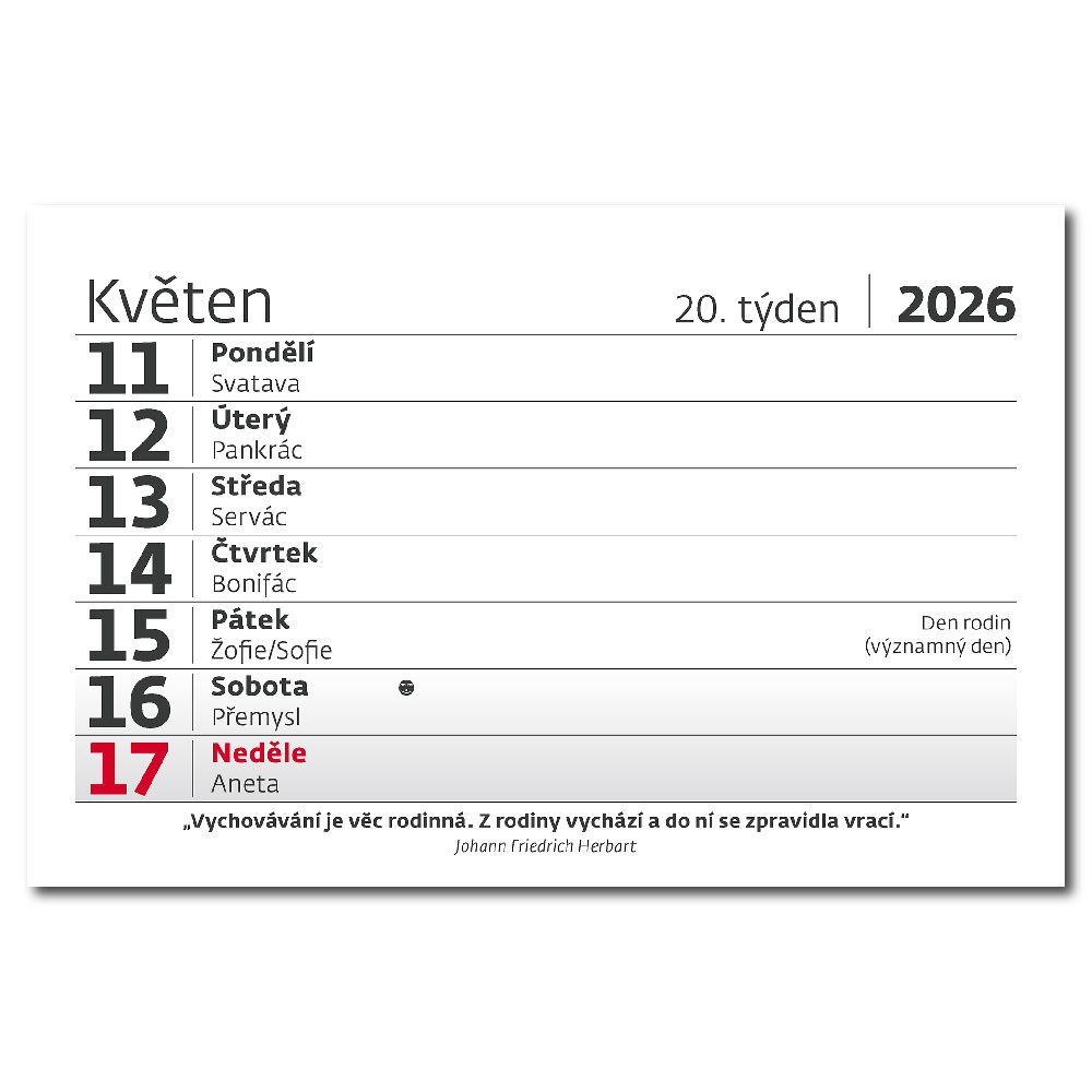 Kalendárium: české týdenní řádkové jmenné