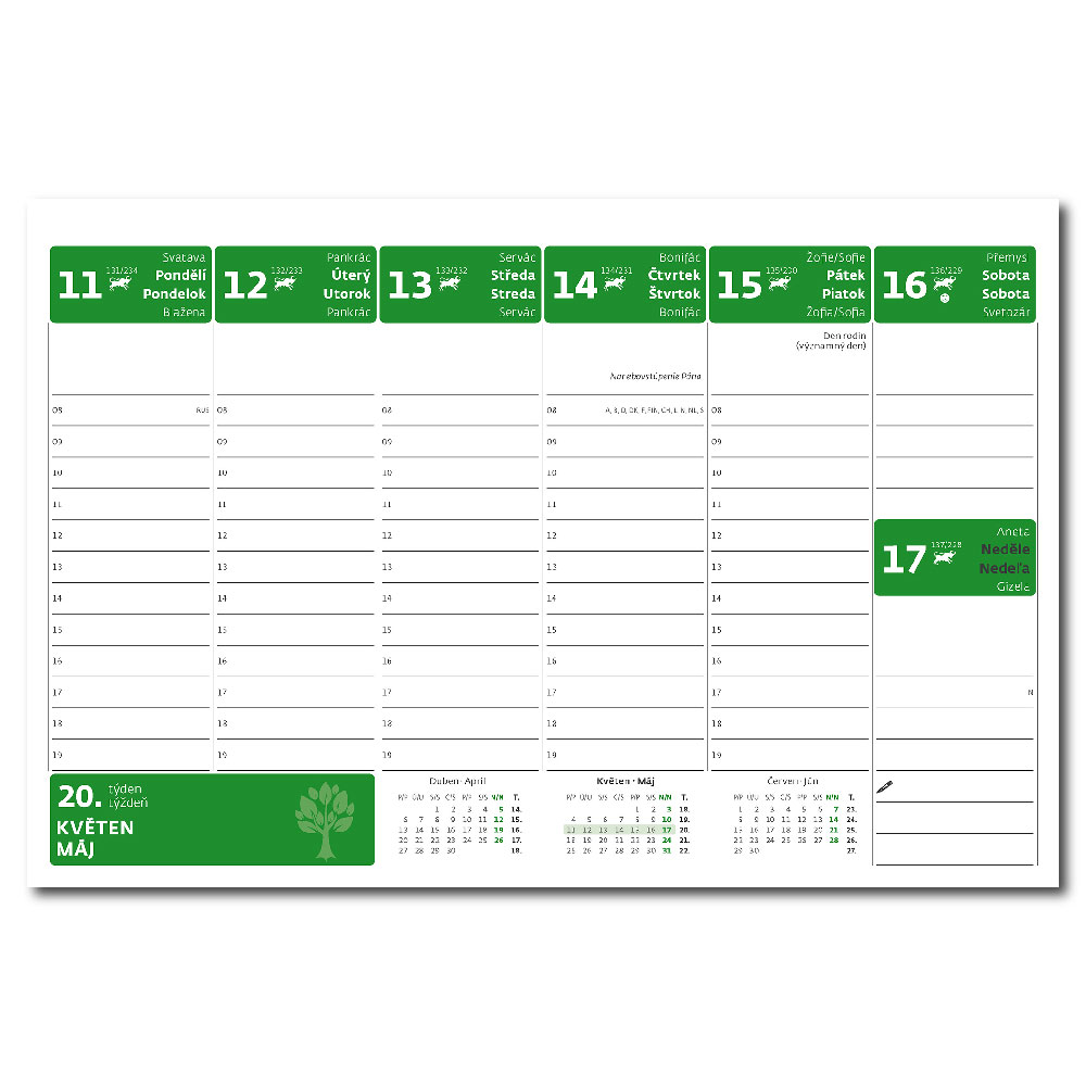 Kalendárium: České/slovenské týdenní sloupcové jmenné