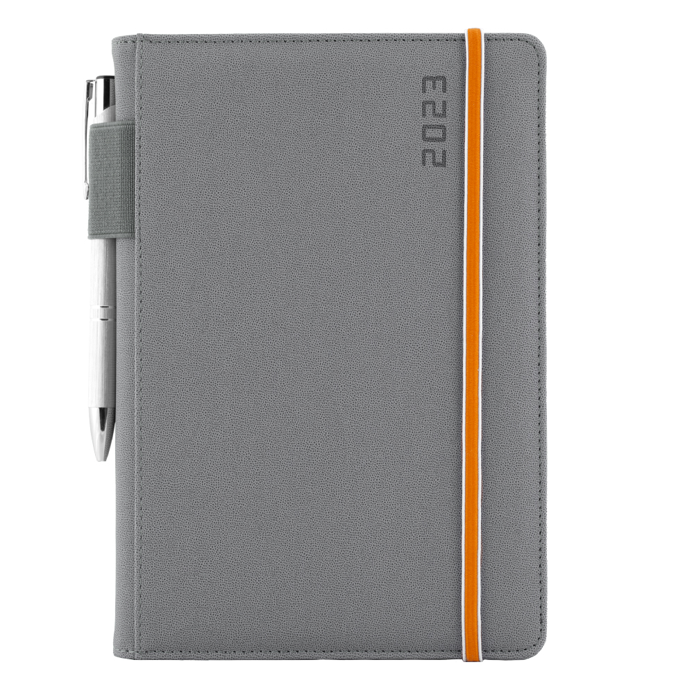 Diary AMOS daily A5 2023 Czech - grey/orange rubber band