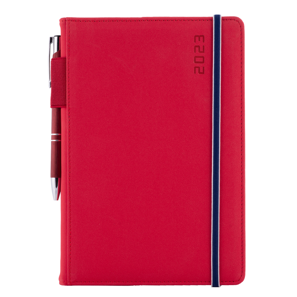 Diary AMOS daily A5 2023 Czech - red/blue rubber band