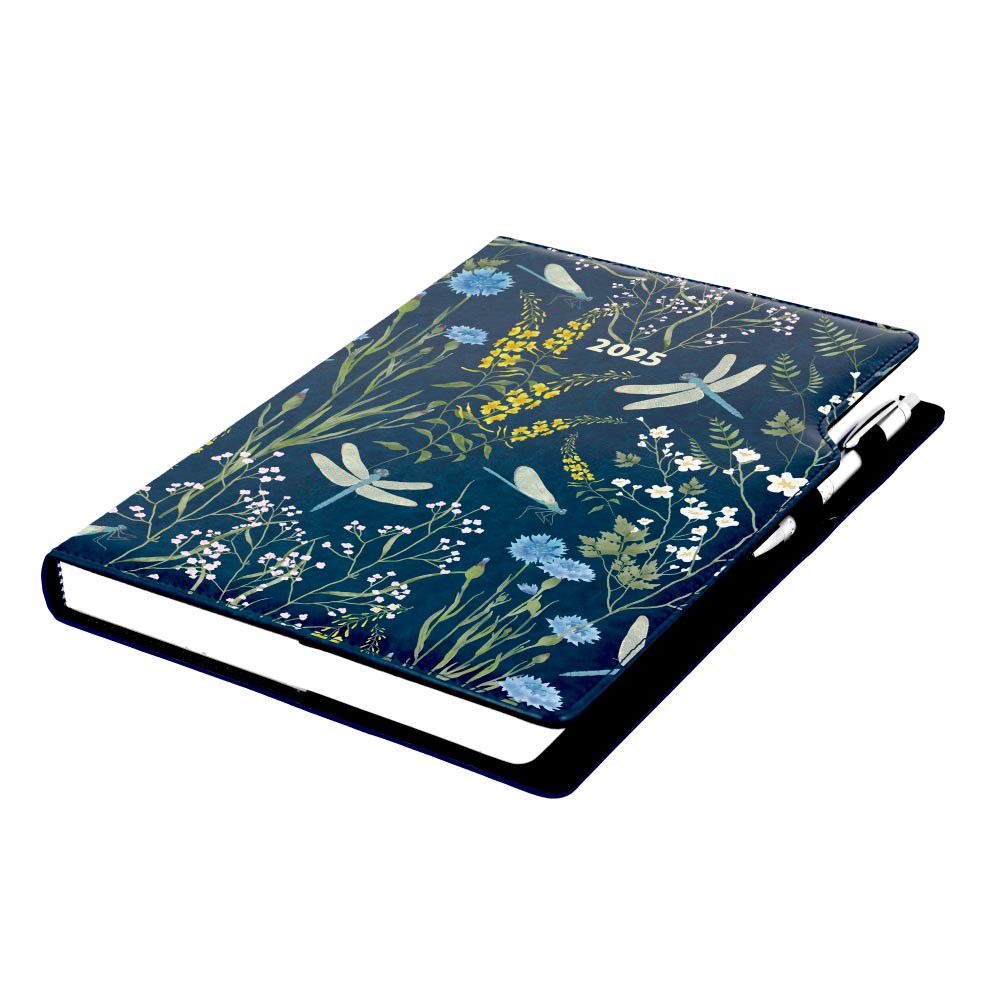 Diary DESIGN daily A4 2025 PL - blue dragonflies