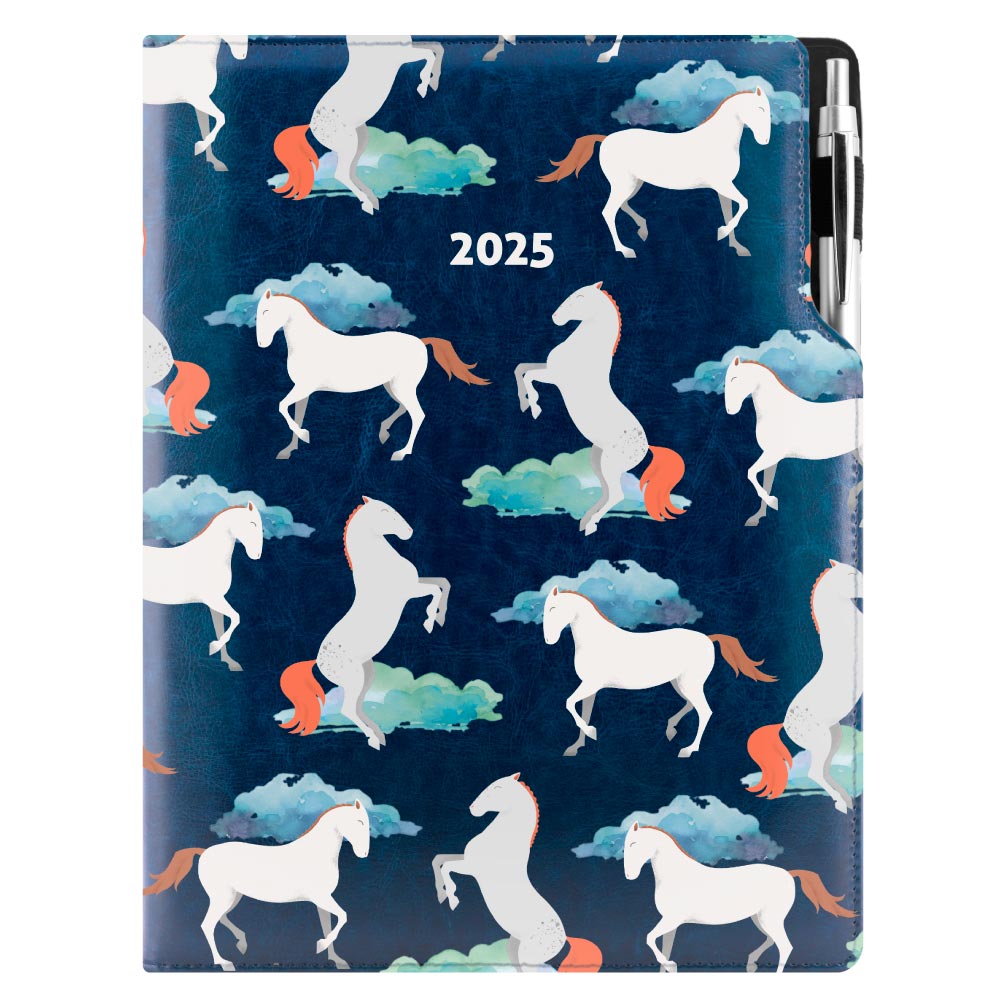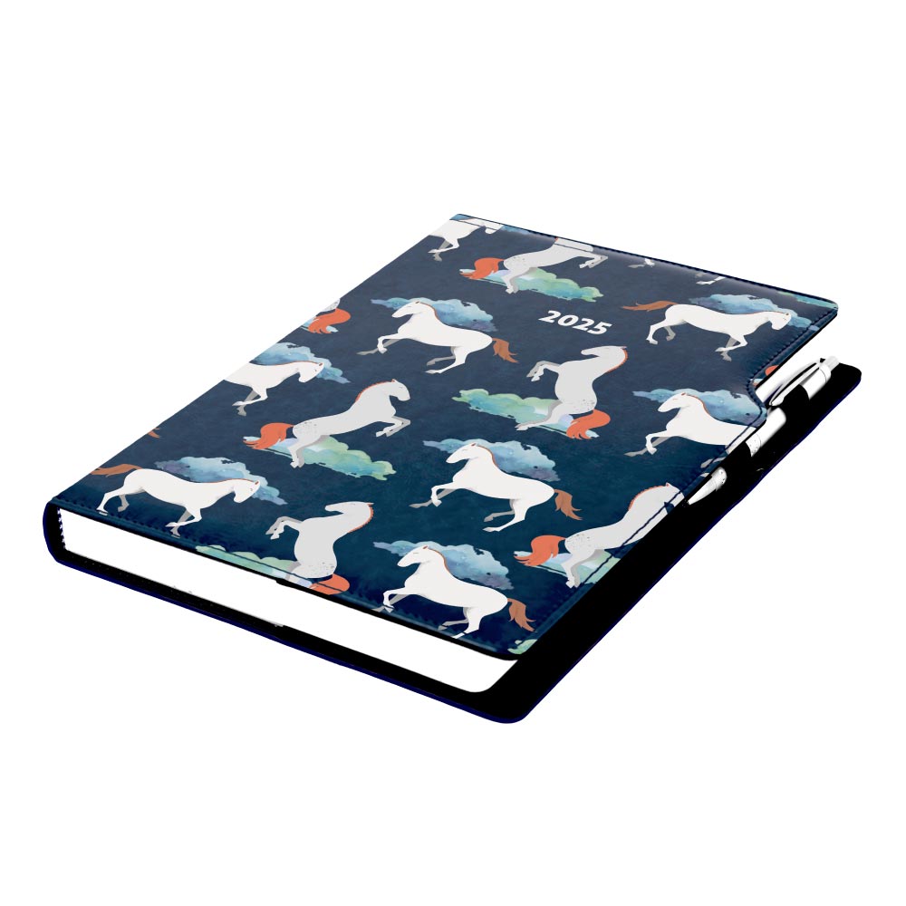 Diary DESIGN daily A4 2025 PL - blue - horses