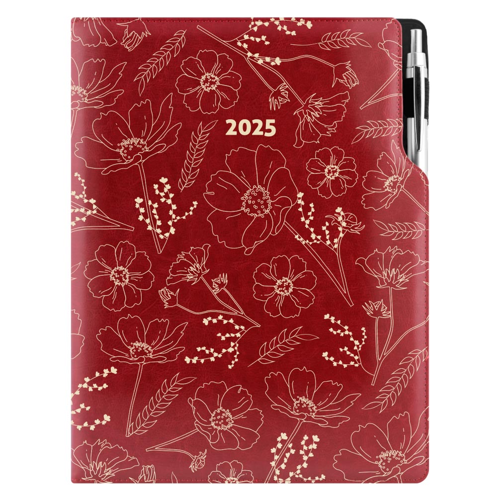 Diary DESIGN daily A4 2025 PL - burgundy - flowers
