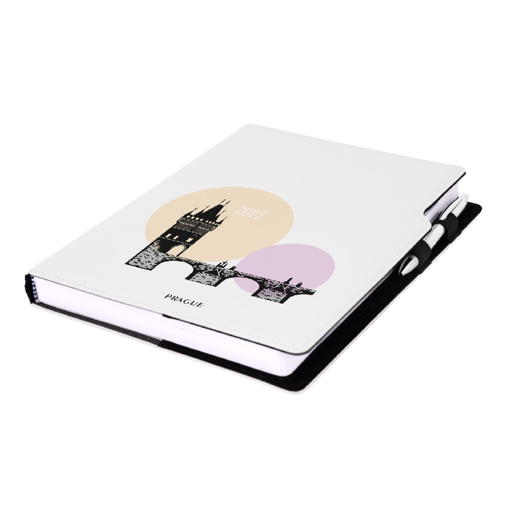 Diář obsahuje: kulaté odtrhávací rožky, bílou záložku a propisku