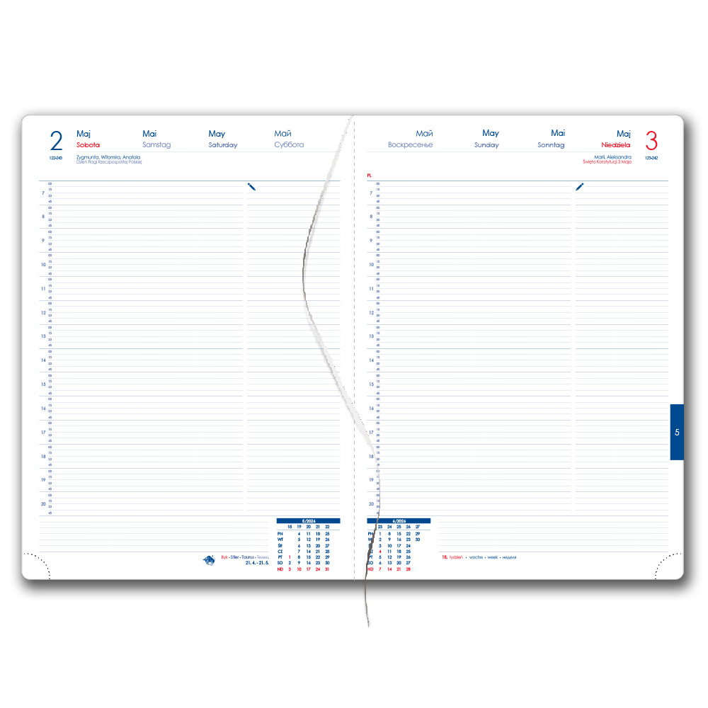 Diář obsahuje: kulaté odtrhávací rožky, bílou záložku a propisku