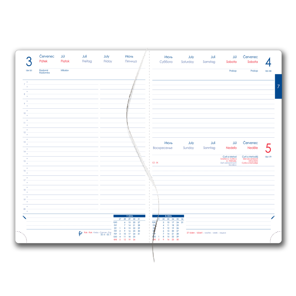 Rozměr bloku: 143 x 206 mm (Blok vkládaný do desek diáře)
