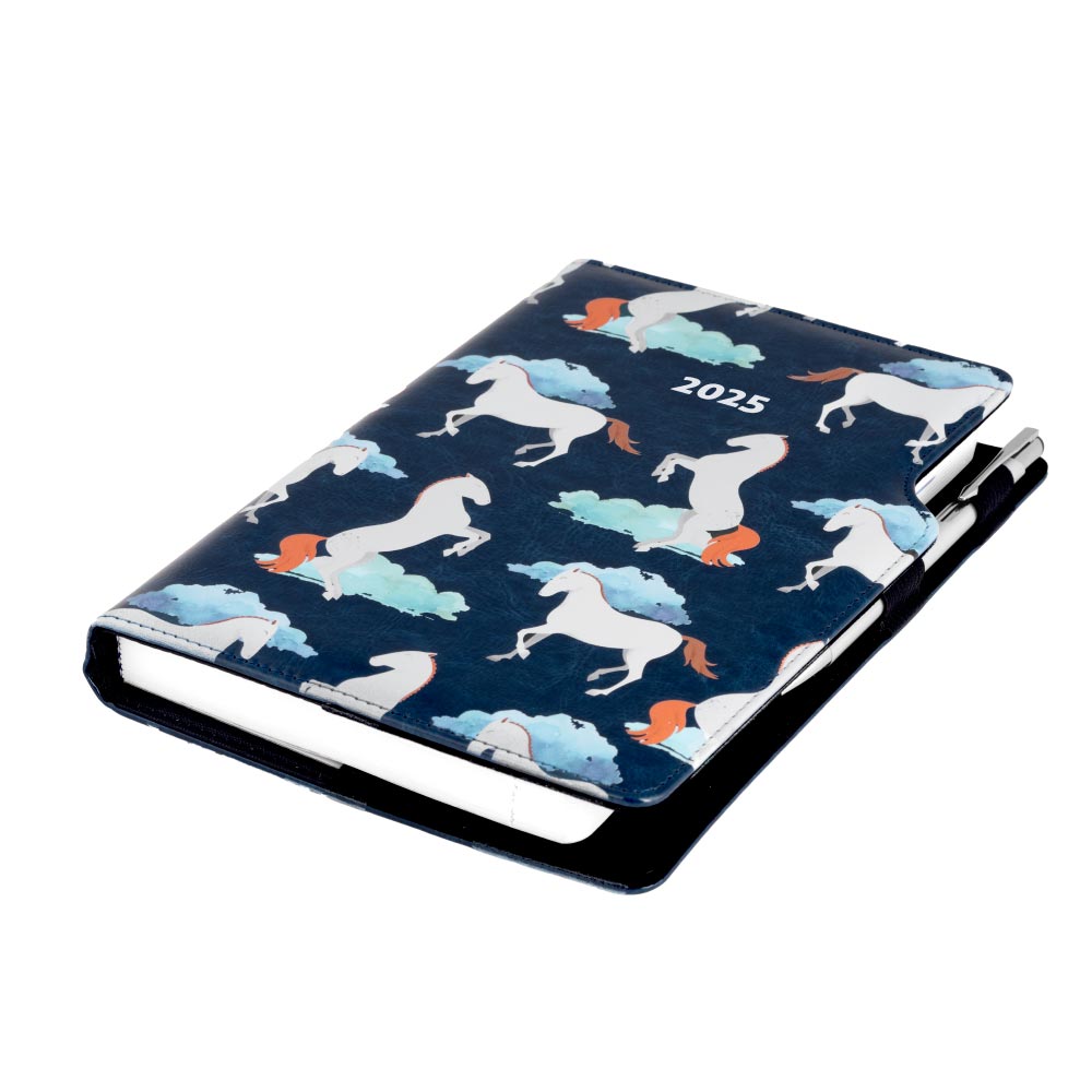 Diary DESIGN daily B6 2025 PL - blue - horses