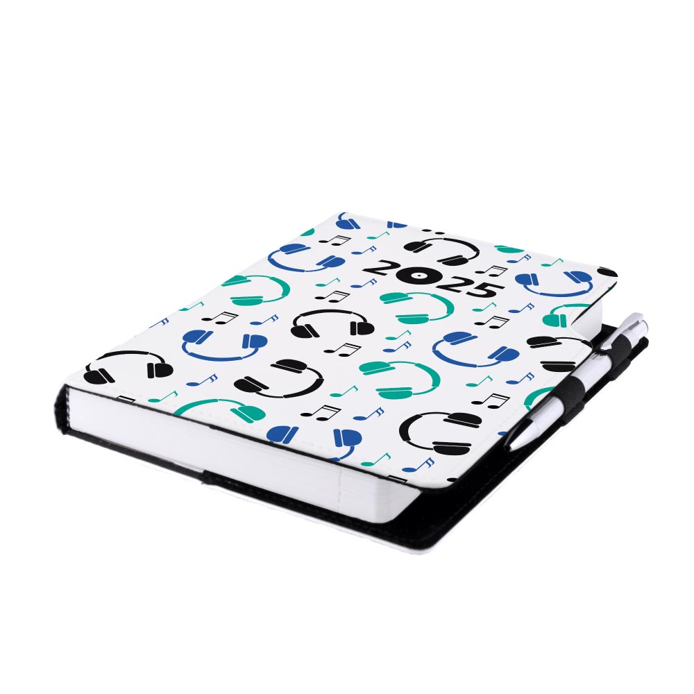 Diář obsahuje: kulaté odtrhávací rožky, bílou záložku a propisku