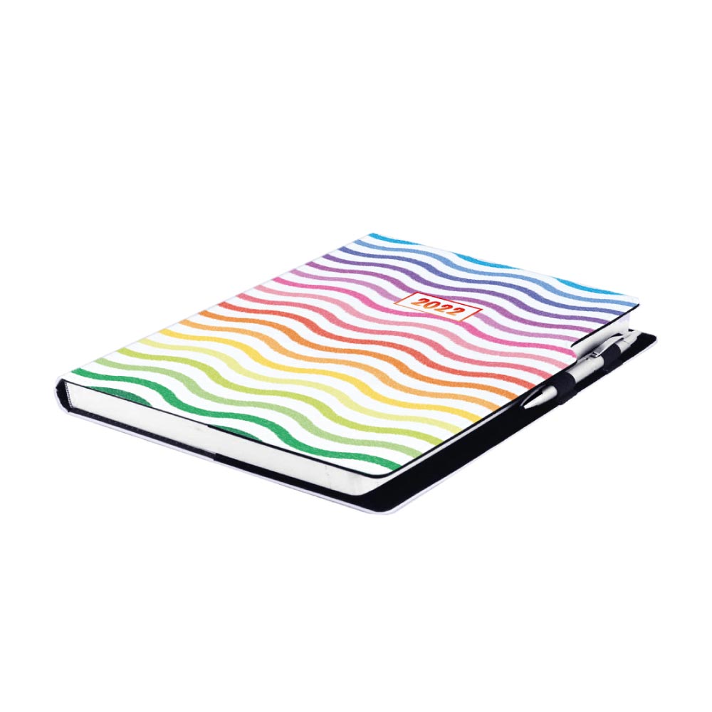 Diář obsahuje: kulaté odtrhávací rožky, bílou záložku a propisku