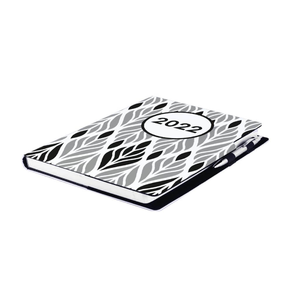 Diář obsahuje: kulaté odtrhávací rožky, bílou záložku a propisku
