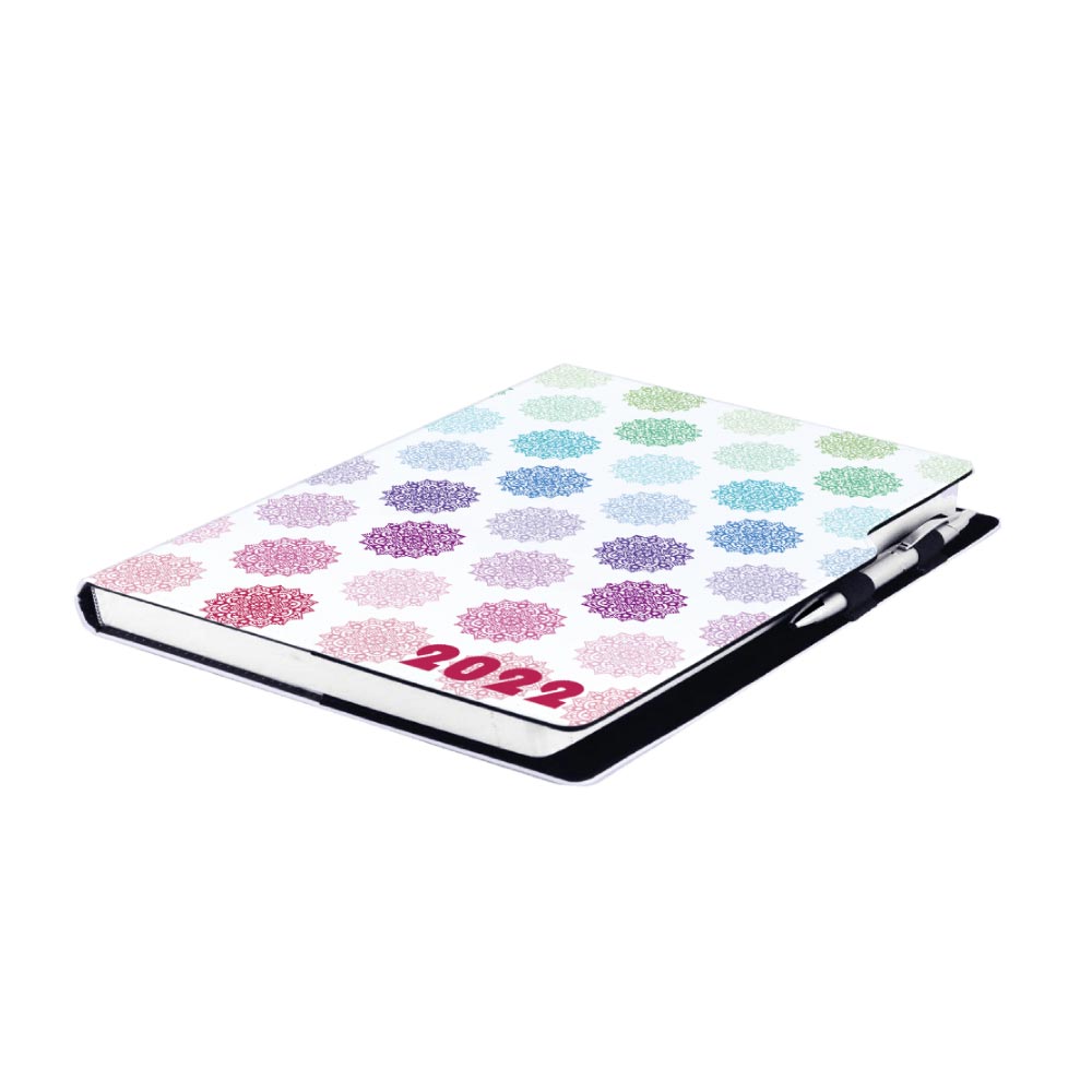 Diář obsahuje: kulaté odtrhávací rožky, bílou záložku a propisku