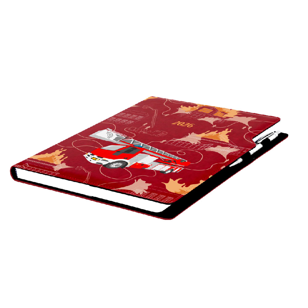 Diary DESIGN weekly A4 2026 CZ - burgundy - Fire brigade