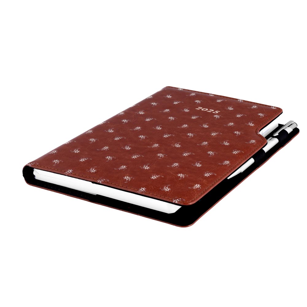 Diary DESIGN weekly A5 2025 PL - brown - white flower